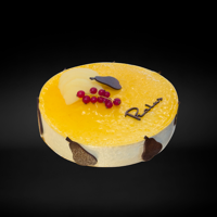Sous un voile de pâte d'amande, une génoise penchée au sirop et au kirsch, une crème pâtissière kirschée allégée à la chantilly et des fruits confits parfumés au kirsch.