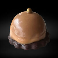 Biscuit noisette, ganache chocolat noir massaï 55% et glaçage chocolat noir 75%.